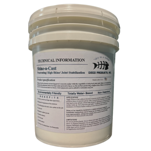 Shine-a-Cast is a hybrid sealer, it penetrates to enhance as well as provides topical coverage to help lock in joint sand. Shine-a-Cast penetrates deep into the substrate while leaving a semi protective layer on the surface producing a higher shine. Shine-a-Cast can be used to revive worn out sun faded surfaces. Color pigments can be added to customize any job.